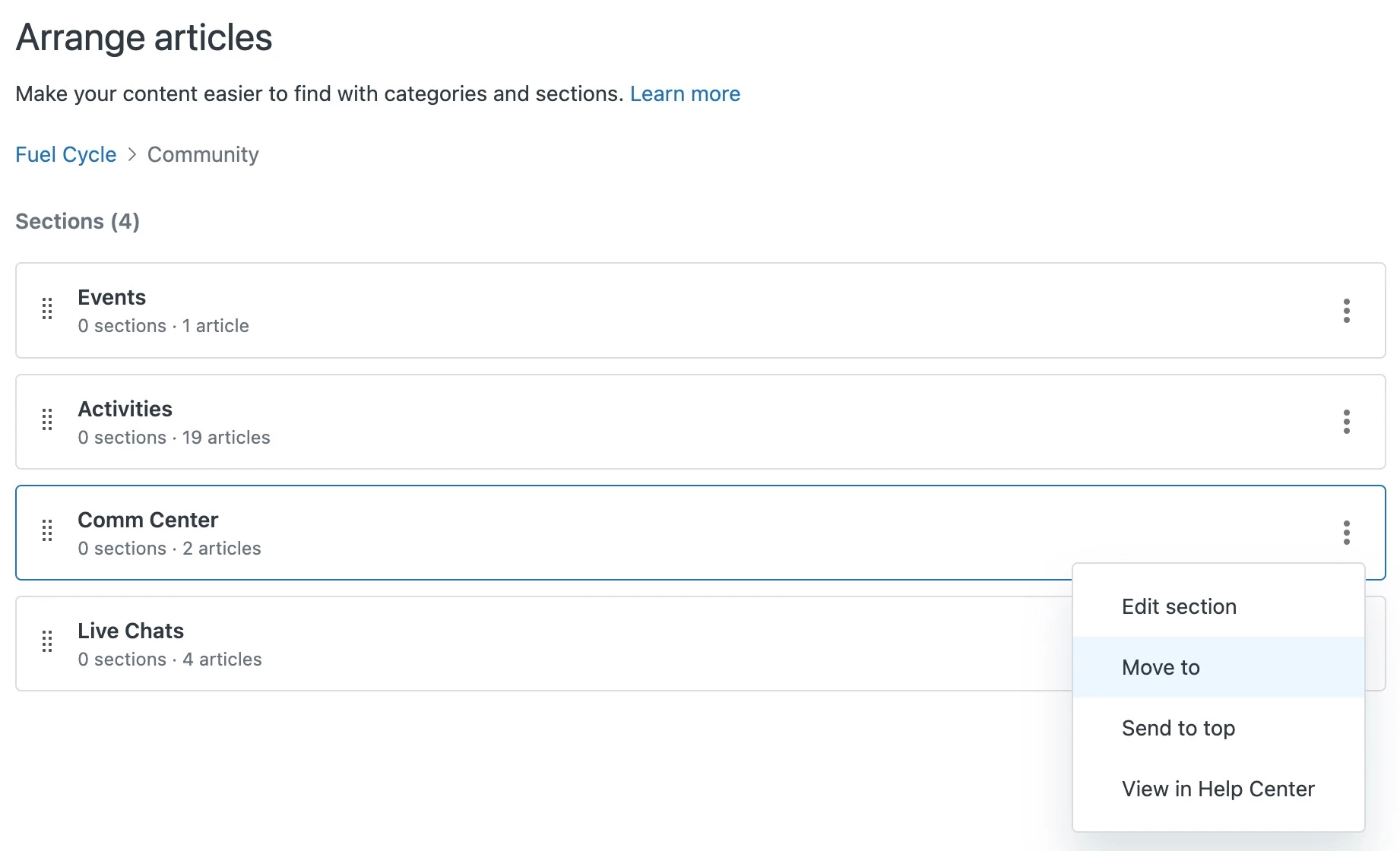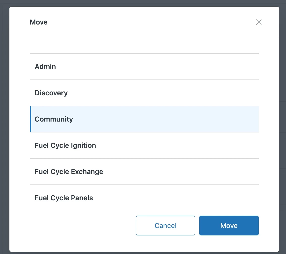 I cannot select a section only a category (in this case, Community is a category).