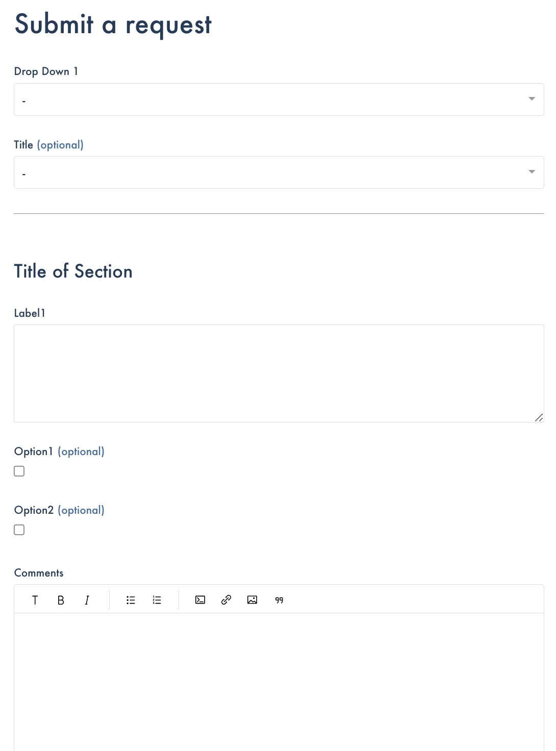 Hello! Was wondering if anyone has code they'd be willing to share where you have attempted to enter groups, line breaks, or sections onto a form. I thought I could possibly use JQuery to change the title of the first field in the 'section' to insert html into the title, but was wondering if anyone had other thoughts/examples. Thanks!