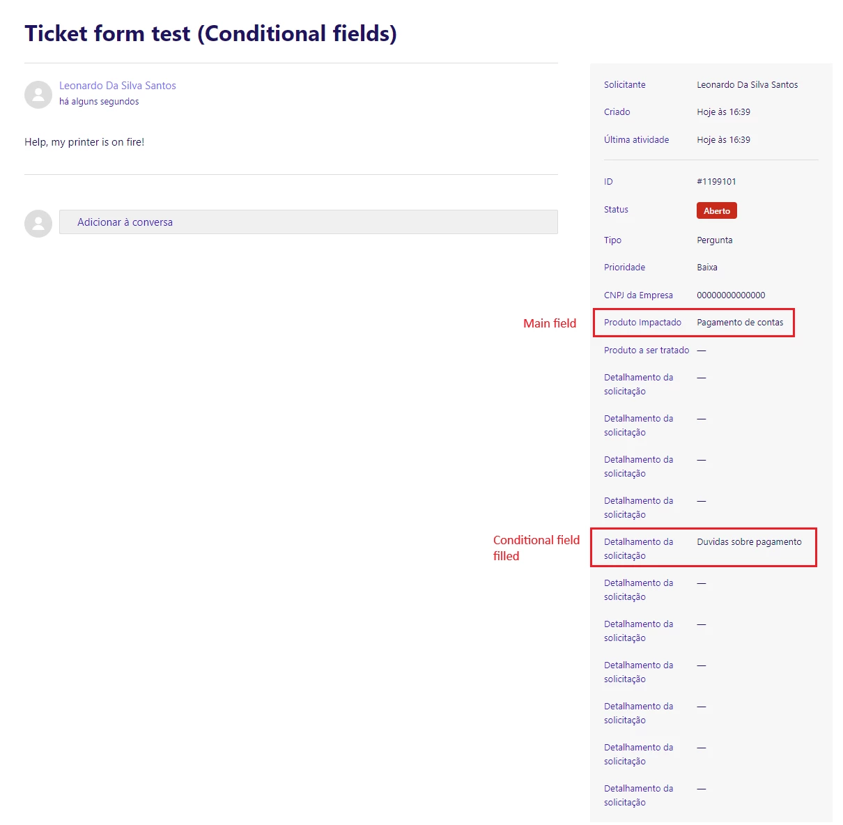 Conditional fields showing up in end-users Requests tab