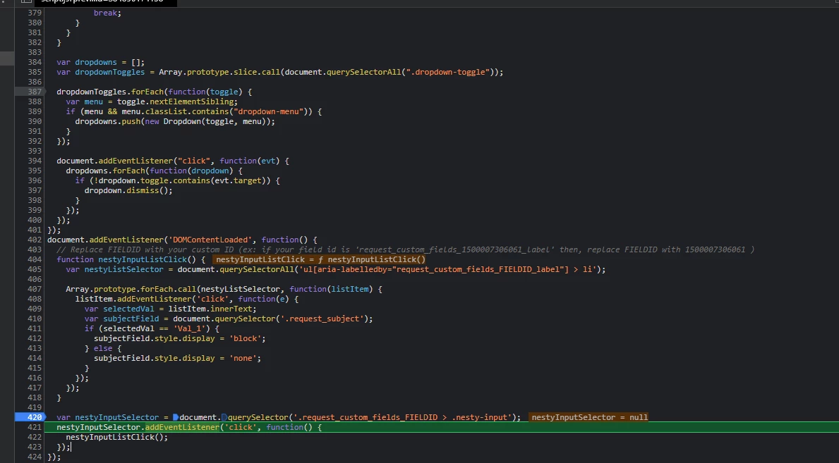 For example: If answer of drop down custom field 1 is Support, a drop down custom field 2 will appear with the following possible answer: SW or HW.