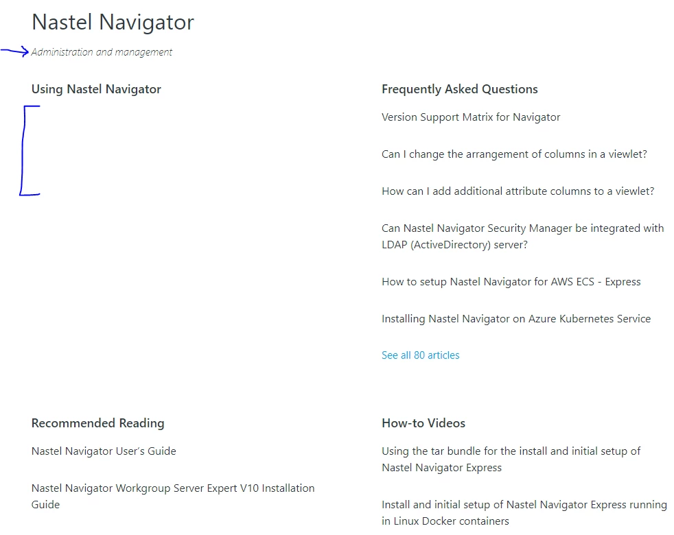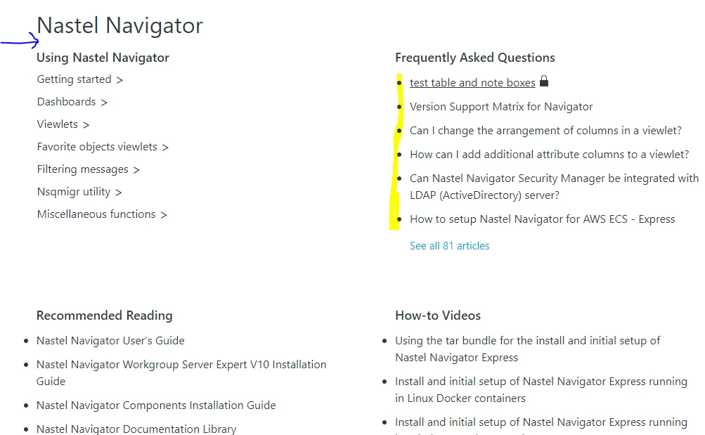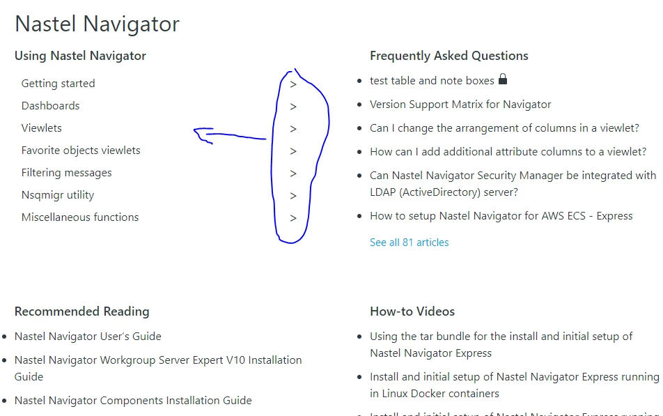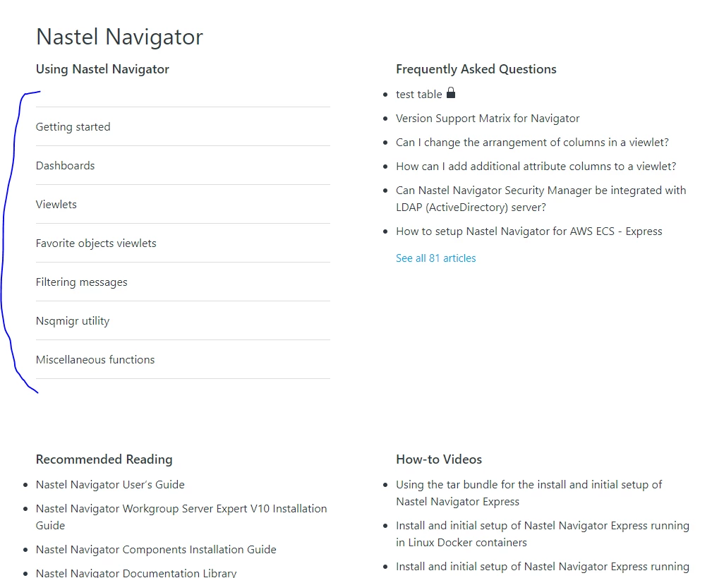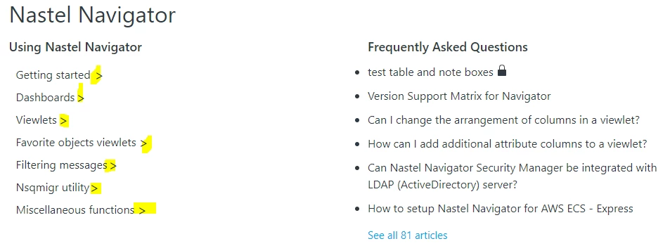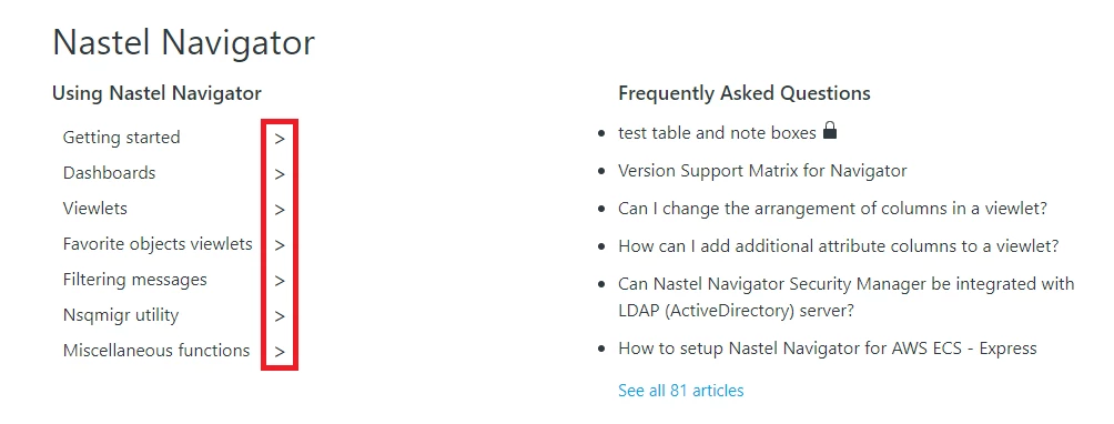 - How can I display the subsections? In the attached image, you will see the "Using Nastel Navigator" section is empty.