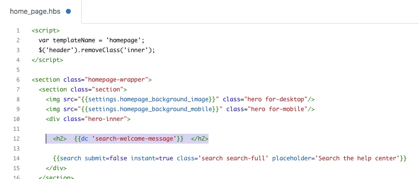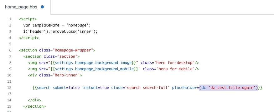 Hello! I'm trying to figure out how to use dynamic content for certain strings that are hard coded into the Guide home_page.hbs and header.hbs pages.