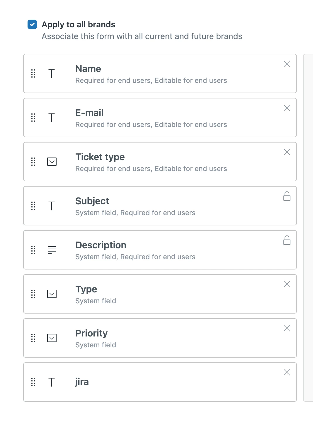 It has the fields we want except it also shows two email fields for End Users to fill out on the Submit a request page. I see where the previous admin added a Text field for "E-mail" to the form so I know I can delete that one and resolve the issue. My main question is where is the "Your email address" field coming from as it doesn't show on the form builder page? Want to know how that is configured as I don't want to break anything. In a separate trial account I am using as a sandbox instance that "Your email address" doesn't appear by default when I create a form.