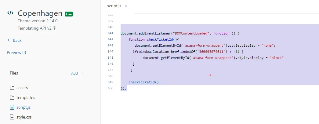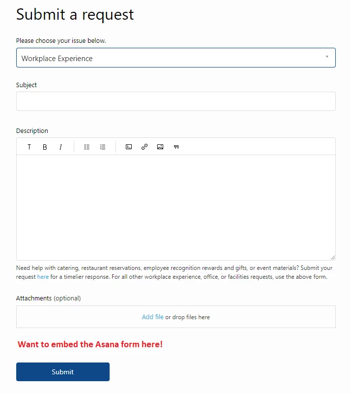 I am trying to embed external content (an Asana form) into a particular ticket form since we would like to redirect certain requests there.