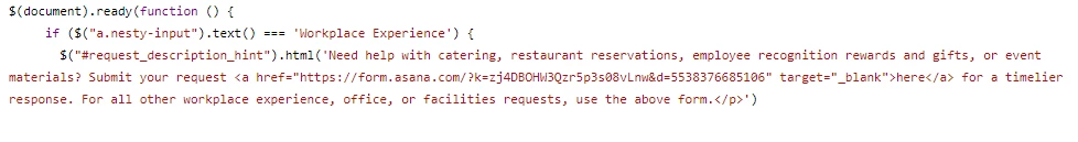 In the script.js, I've set this description up to link employees to the other form but it would be great to just embed it directly. Adding the embed code at the end of this section doesn't do anything.