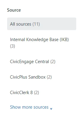 Where you can filter Help Center, Community, Expanded Help Centers, etc. in.