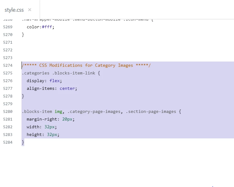 iii). Add CSS to style.css file at the bottom.