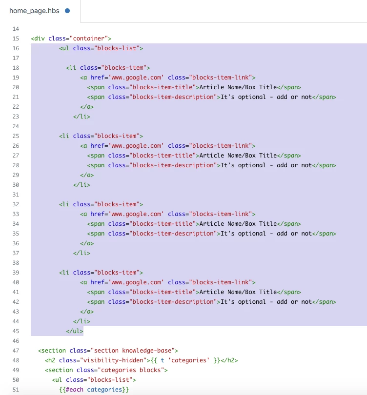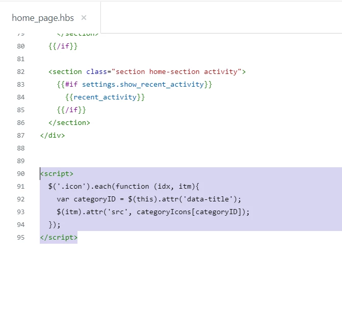 i). Add the script code at the bottom of your home_page.hbs file.
