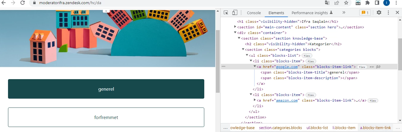 $('a[href^="/hc/da/categories/11695152081172-generel"]').attr("href", "google.com");