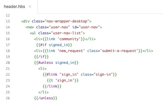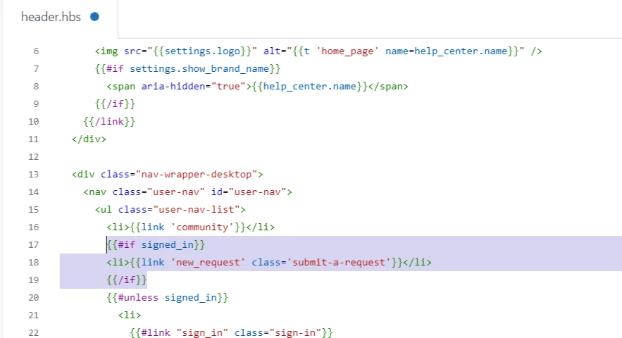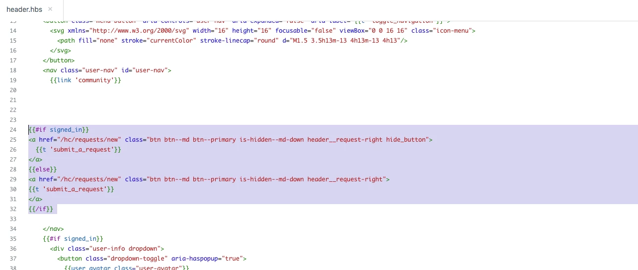 In our help center, we have the "Submit a Request" option as a button, rather than plain text in the header. Before changing themes, the previous setup had the "Submit a request" link hidden until the user signed in. However, our previous HC did not have the "submit" set as a button.