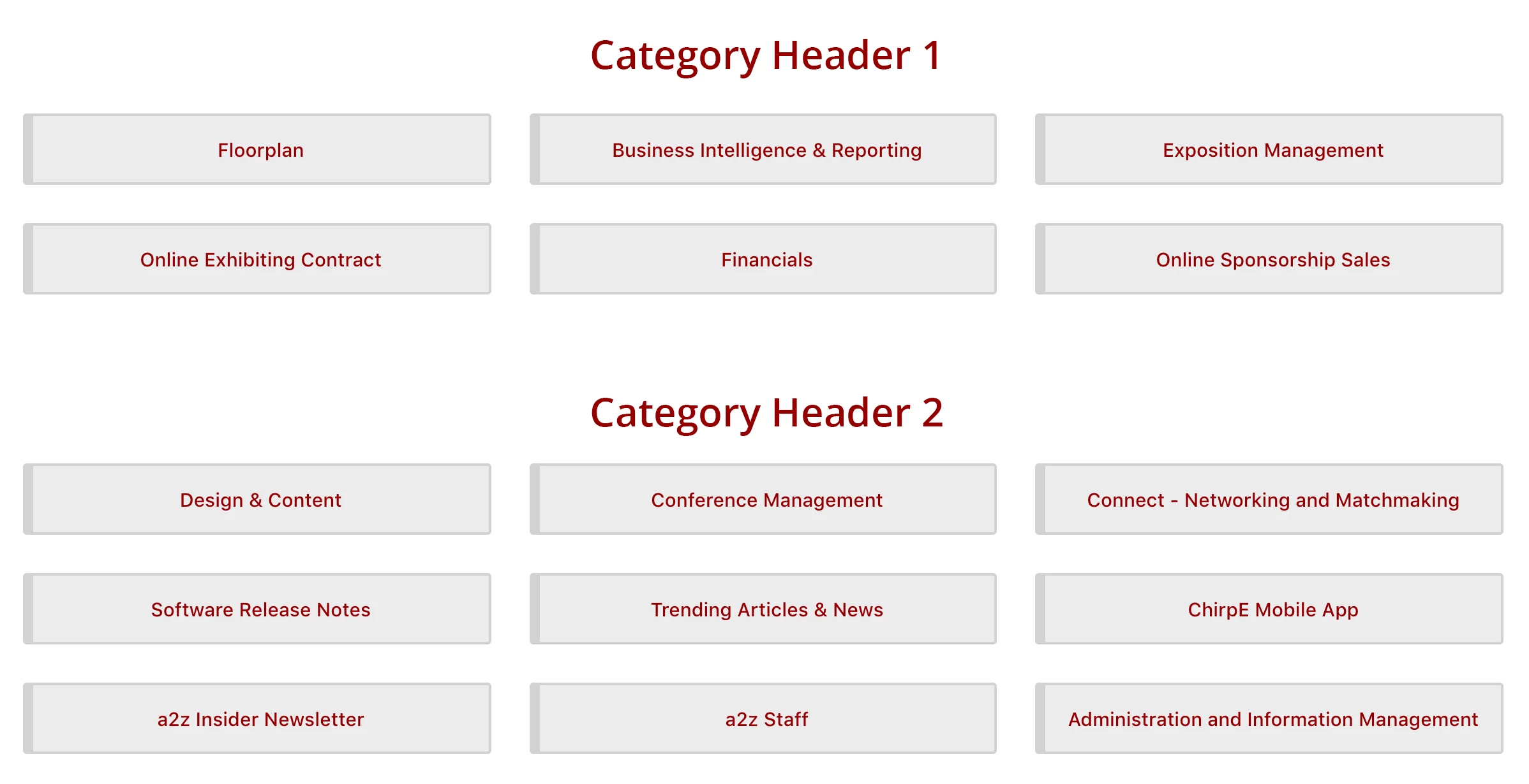 So we have "15" total (current) category buttons on our homepage underneath our search UI section. We want to be able to split this large group of 3 columns (5 each column) into "2" categories potentially. The code for this section in the theme ZenDesk editor is below. Do you need our homepage url to see the UI?
