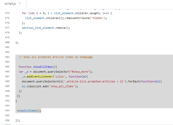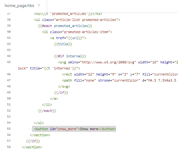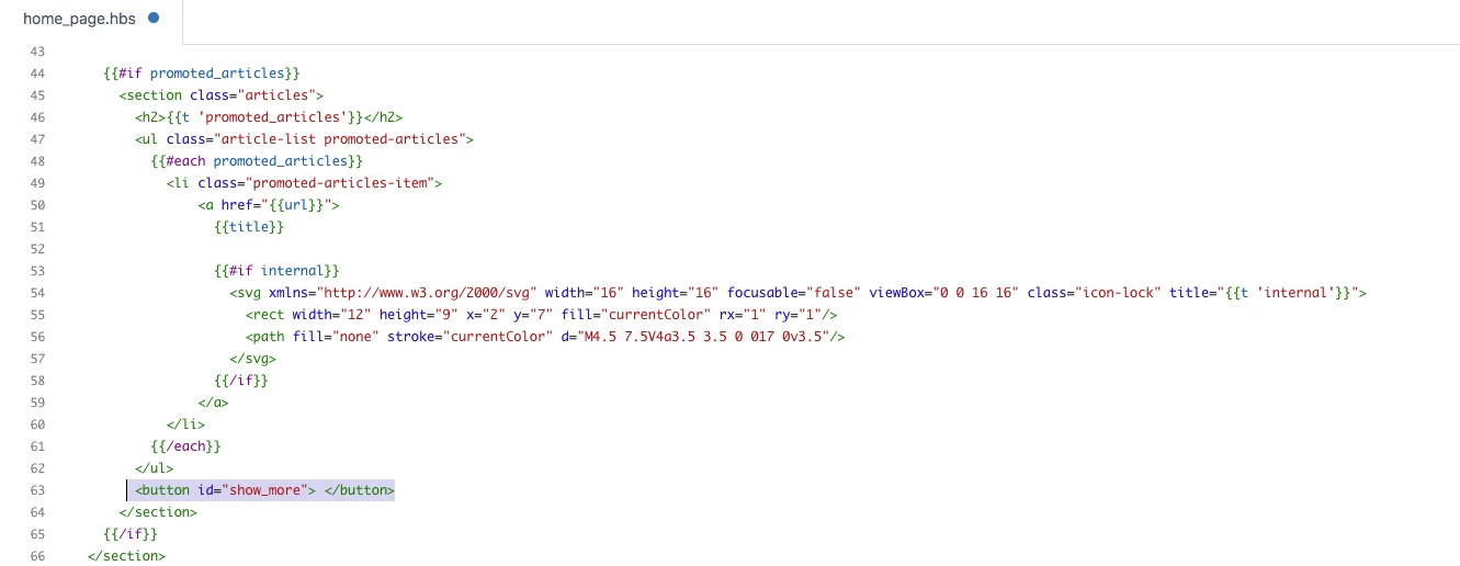 @ifra Thanks, i just copied and pasted the script to the script.js file. I also had to edit the home_page.hbs and now the "show more" button shows up. There are a couple of issues now:
