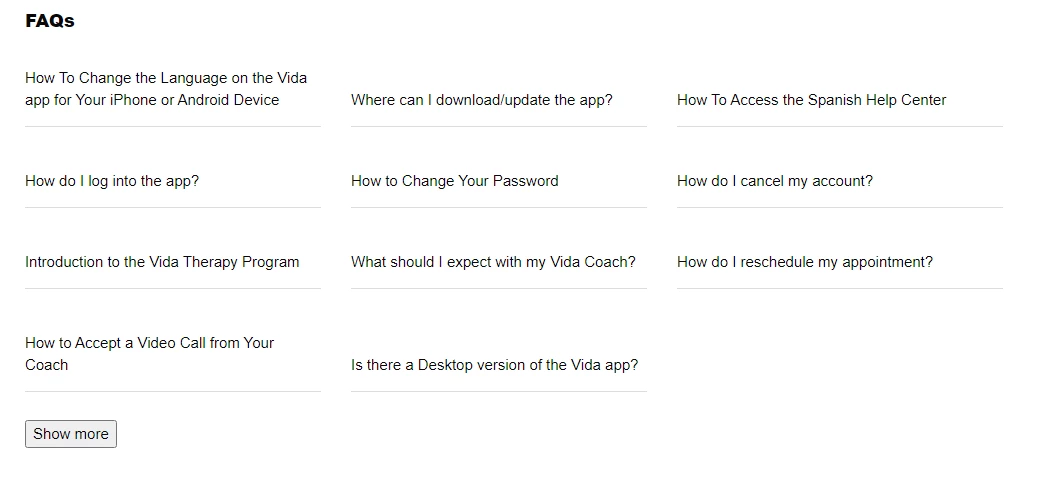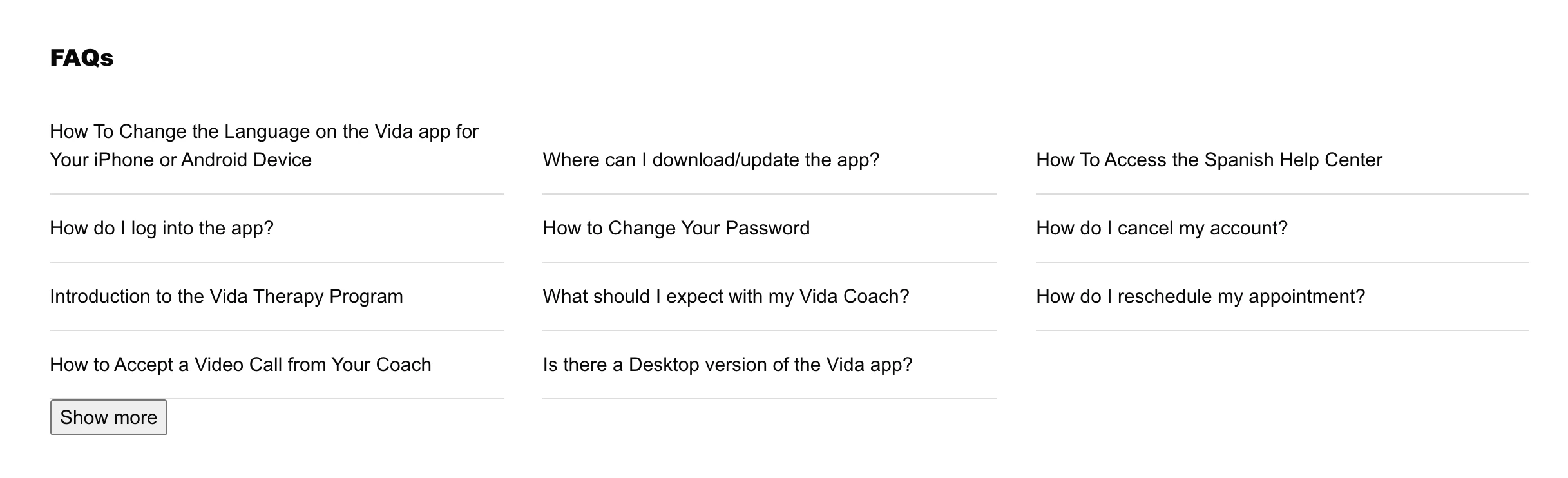 2. The spacing and position of the "show more" button does not look right. I think the button should be in the middle of the FAQ section and also the button should be lowered a little bit so its not touching the line.