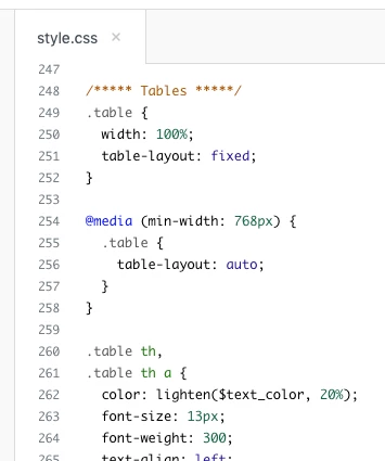 I would like to have a way to format all tables that are created in articles so the format is the same. Does anyone have an ideas on how to do this? Could you share code so we can make this simple change to keep tables consistent in format?