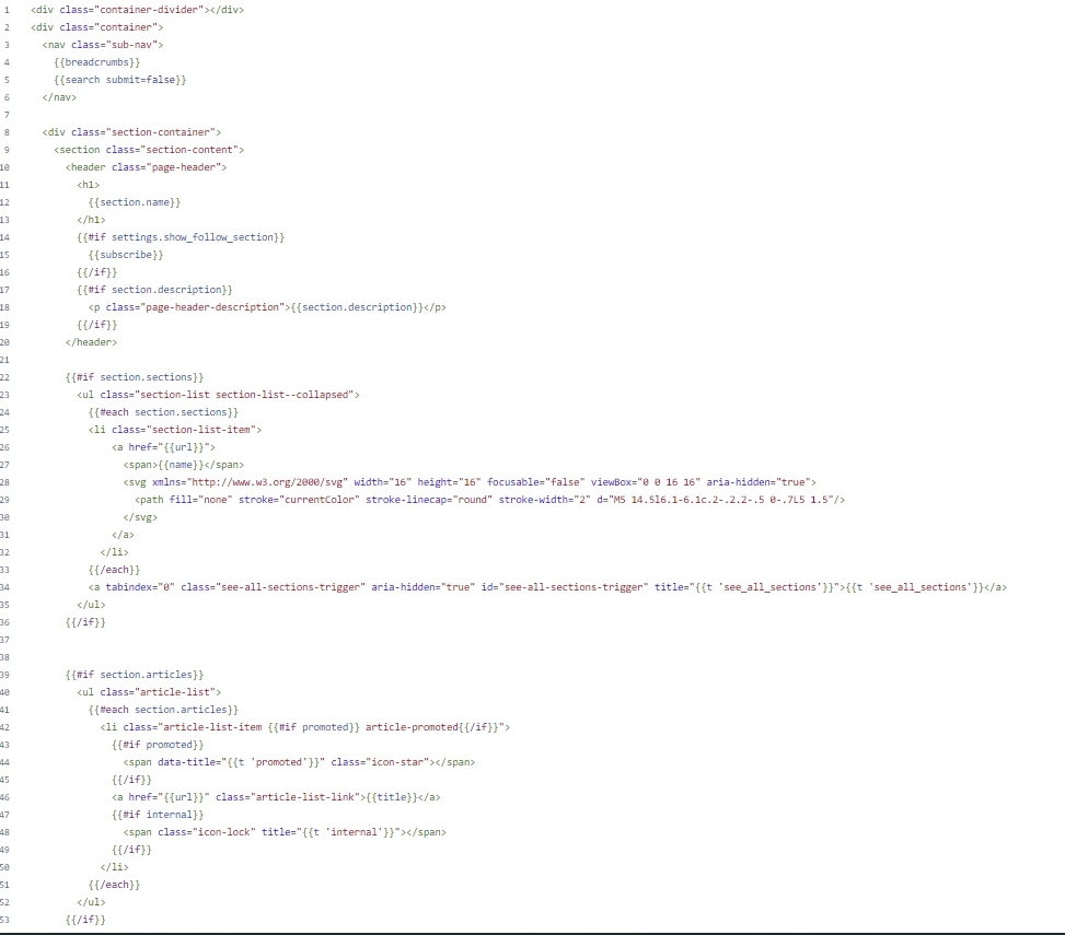 For section page you need to do same. Copy the same code and paste that after {{title}} which is inside the {{#if article}} code on section page.