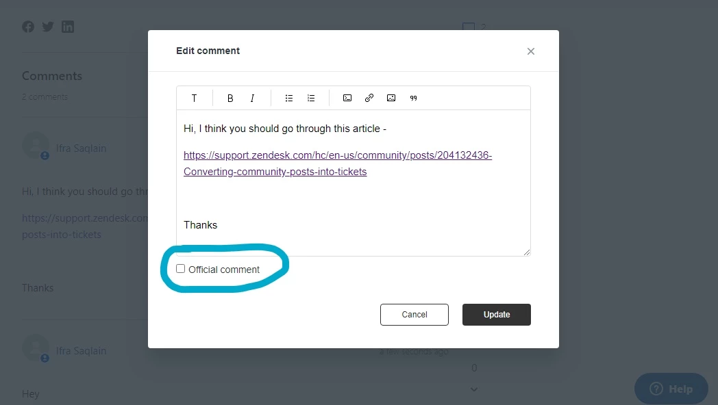 I need to remove the "Official comment" from an older community post which is no longer correct.