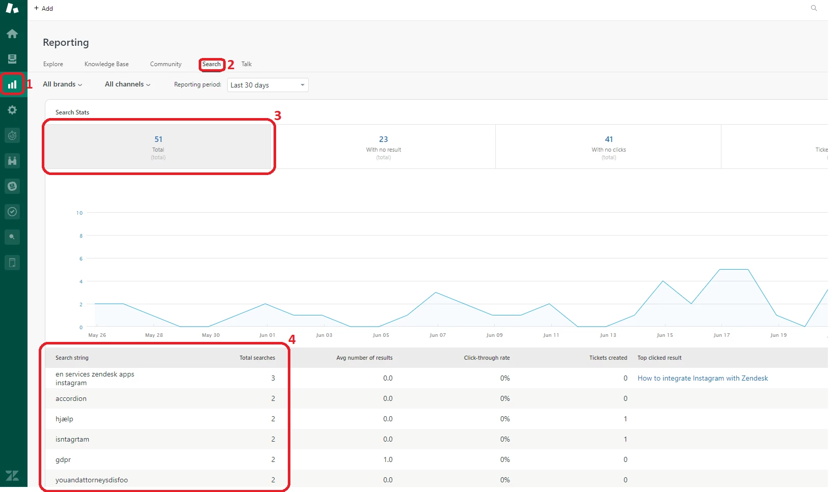There's an insights/analytics section where you can see the exact text string users have put into the search bar and whether they found the article but I can't seem to find it. Do you know the one I'm talking about? Can someone please help me find it?