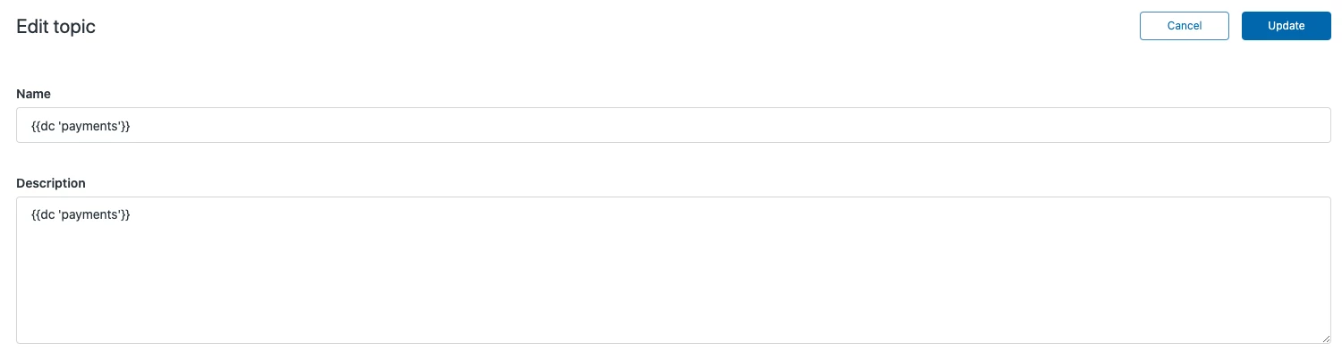 So, it would be really helpful to use these dynamic content placeholders in the topic titles and descriptions, at least to have the users understand what each topic is for. I'll leave some example screenshots.