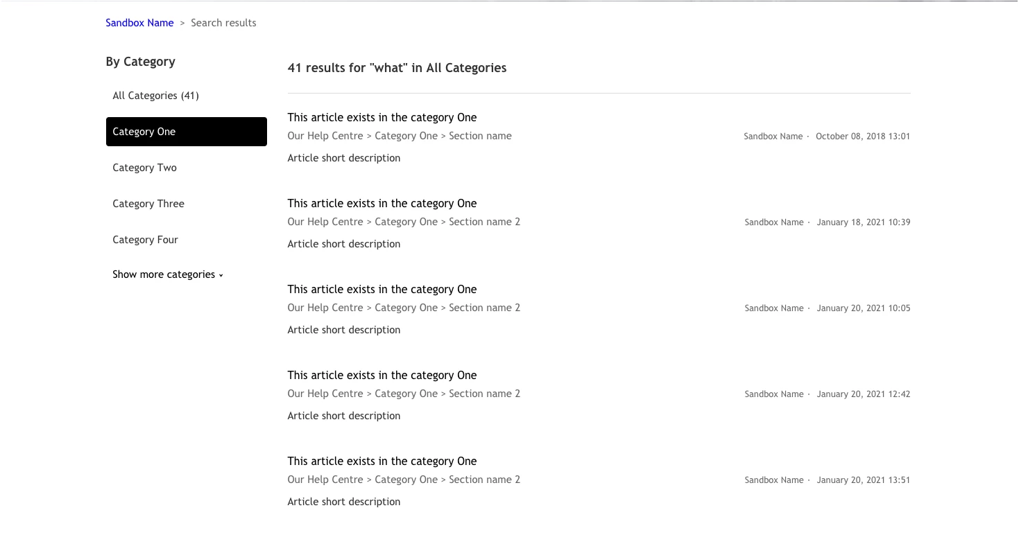 The page has 3 categories, based on the product a user is currently using. My concern is that if a user is navigating through one category, it would be great if his/her search results showed articles from within that category only, and not from the entire bunch of articles on the help center. Is there a way to make this possible on Zendesk?