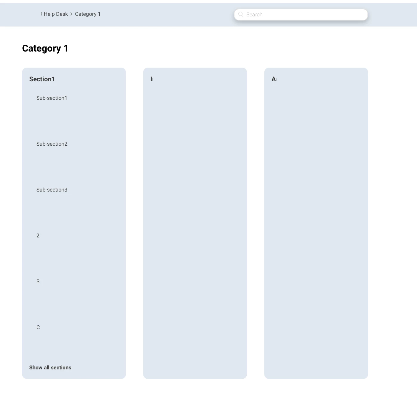 I'm using the Copenhagen theme and I have a 4-layered help page: a category page which shows a couple sections, and each section includes sub-sections, and each sub-section includes articles.
