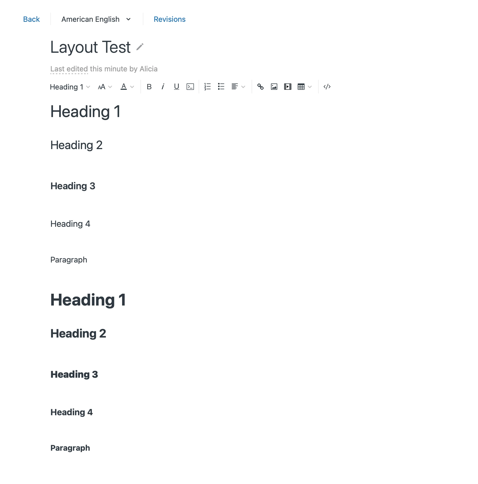 Also, Heading 1's font seems to have changed between the draft and the published page.