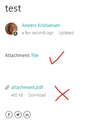 Is it possible to link to attachments in the article body instead of listing them at the end of the article?