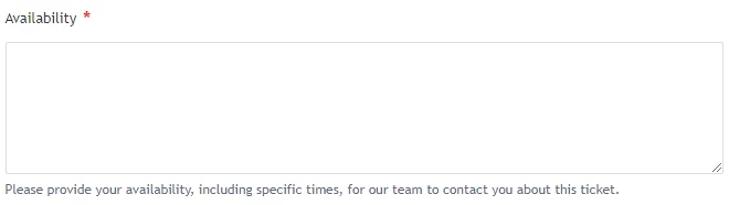In the example above, this would show "Availability", then directly below that "Please provide your availability, including specific times, for our team to contact you about this ticket." and then finally the multi-line text box.