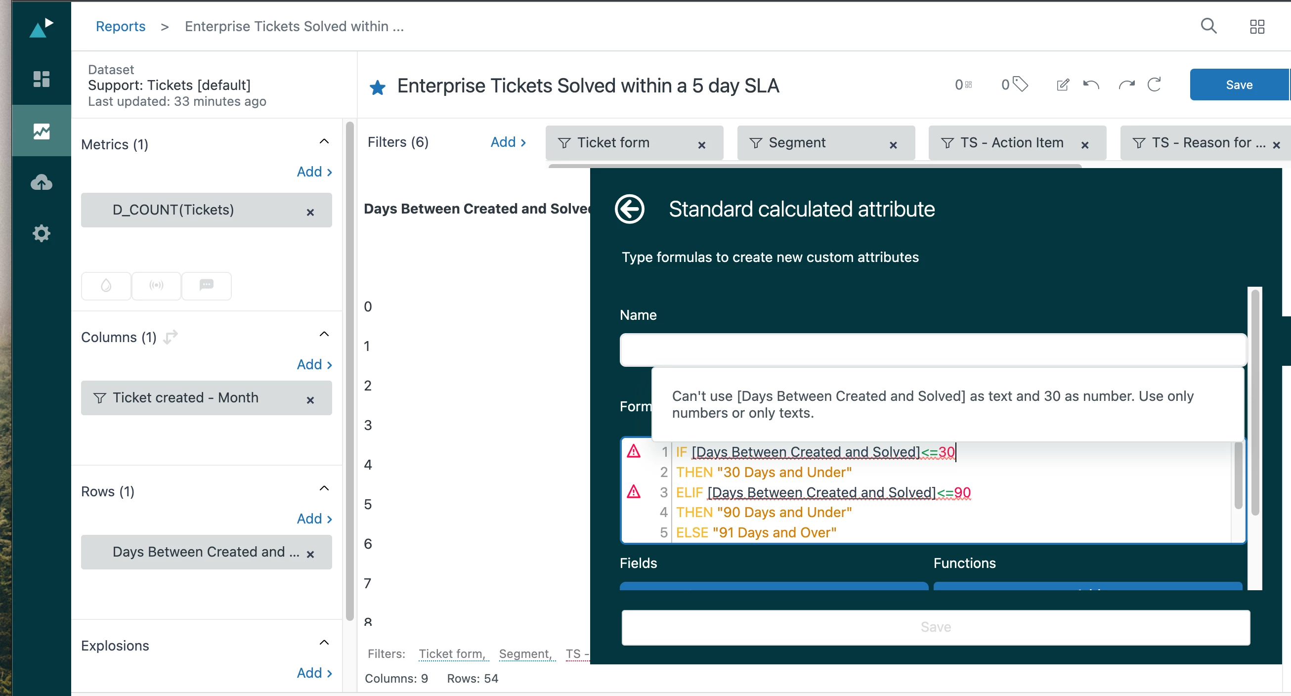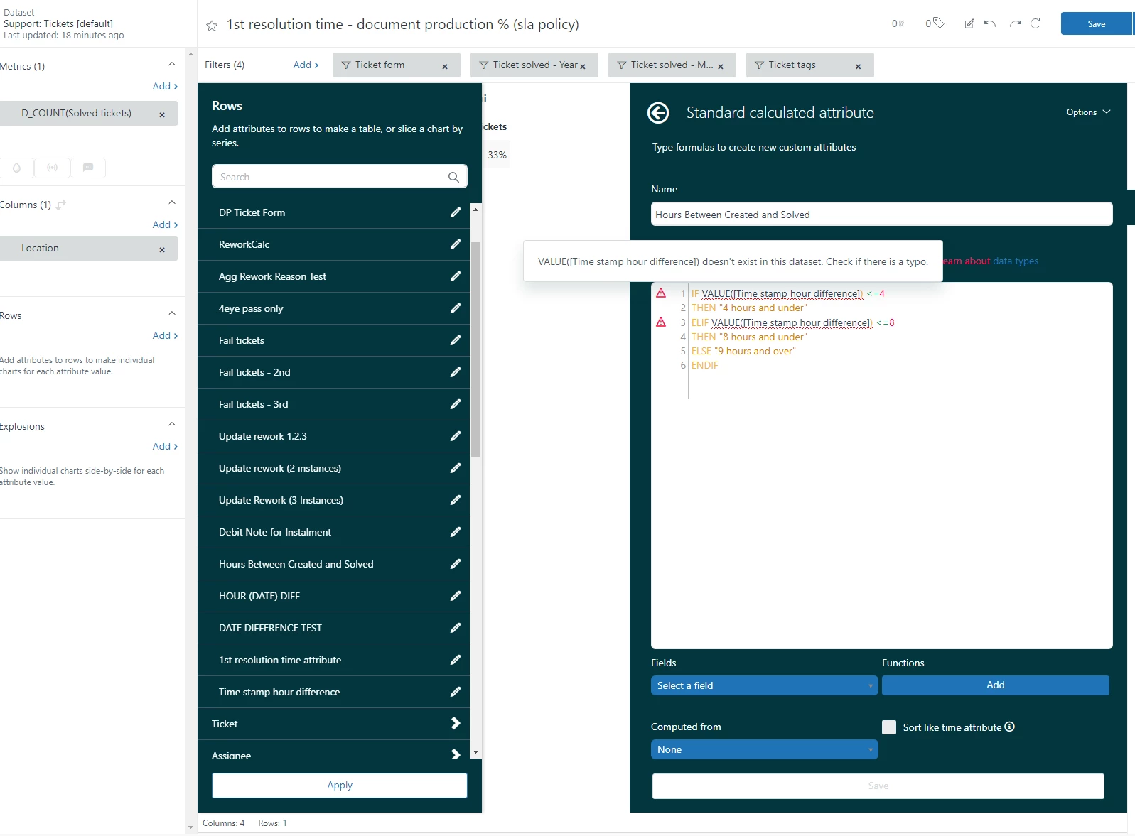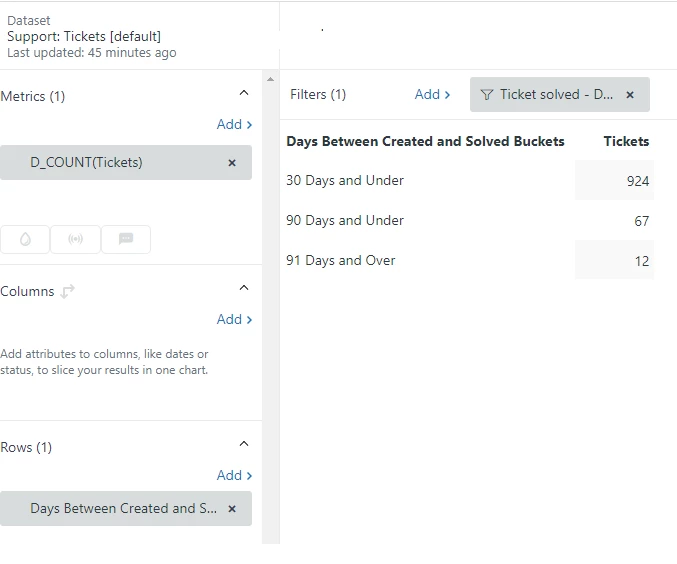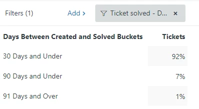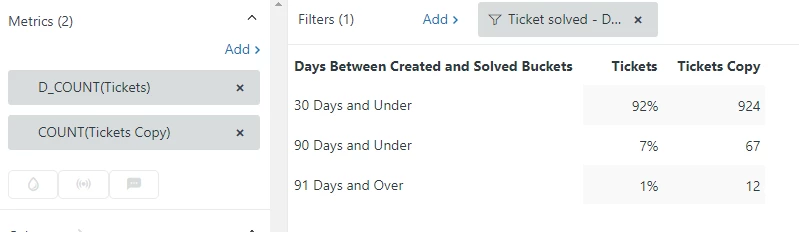 Reporting on % of tickets solved within a set period of time