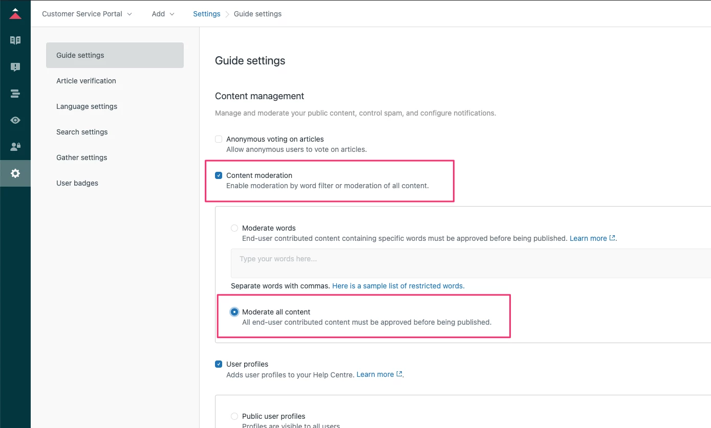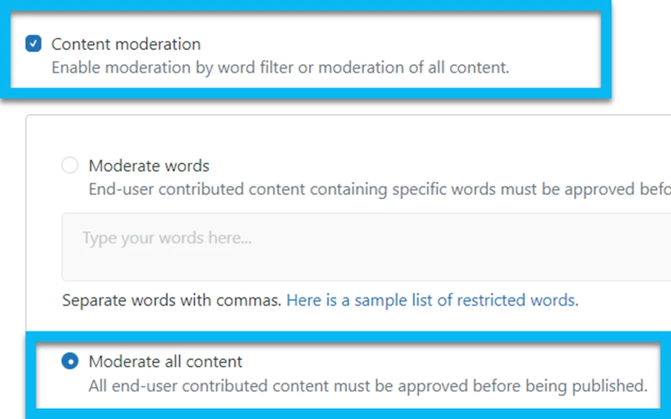 You can also check our article, Moderating end-user content for more information about this.