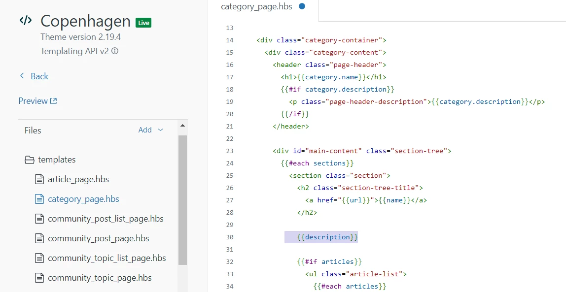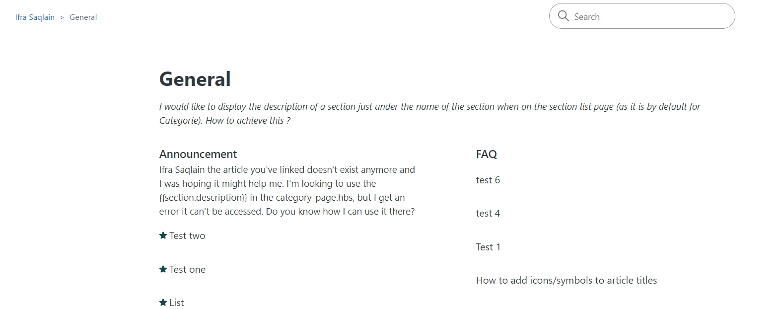 I would like to display the description of a section just under the name of the section when on the section list page (as it is by default for Categorie).