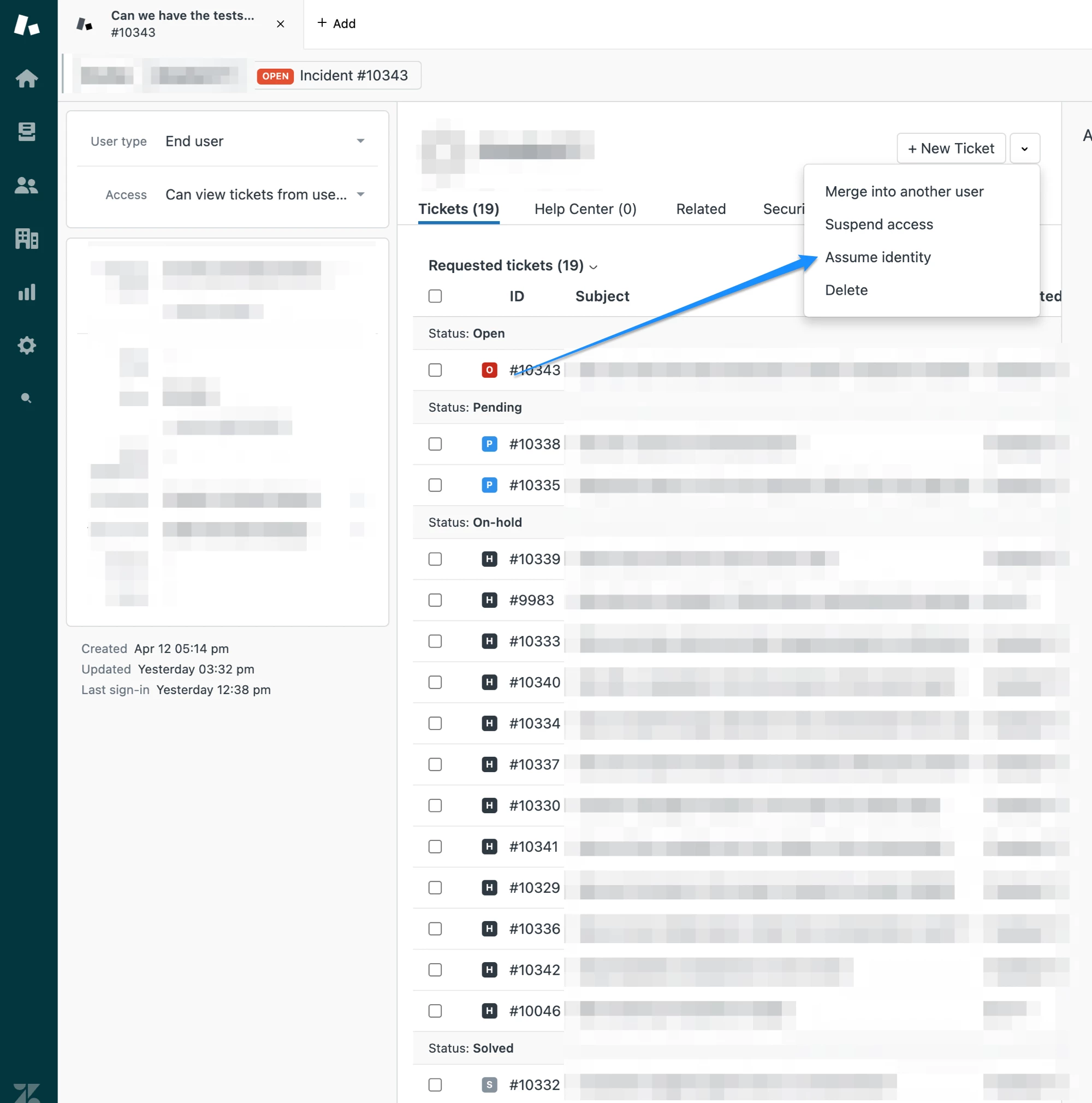 When I assume the user's identity I can see the tickets that they should see. When they login to the system they cannot see the tickets. We have tried clearing cookies and entirely new browsers. Any idea what could cause this? They see no requests found, but when I assume identity I see a list of 10+