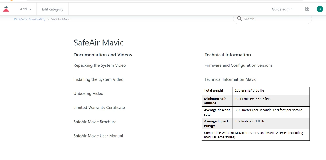 Can I add a table of information that the end user can see under a category? that a section will be the information?