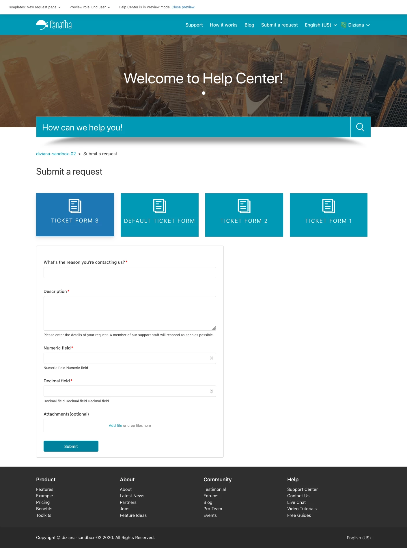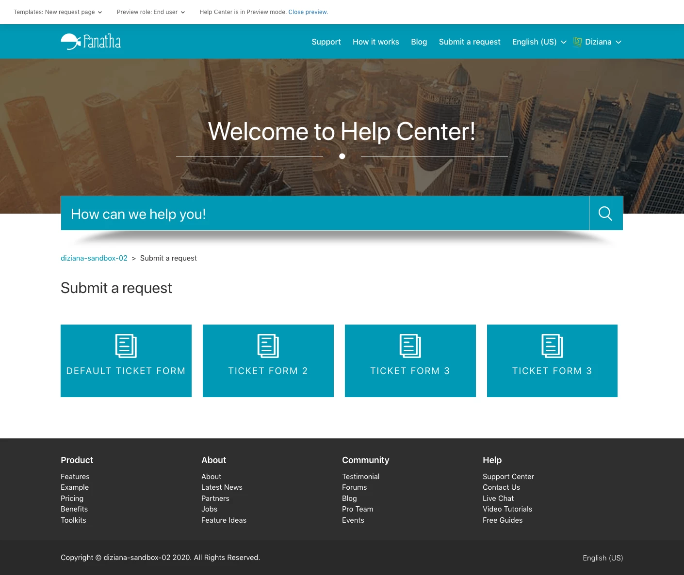 Hello - I'm looking to set up our Ticket Forms as "tiles" on the page instead of a drop-selection. So instead of this image below: