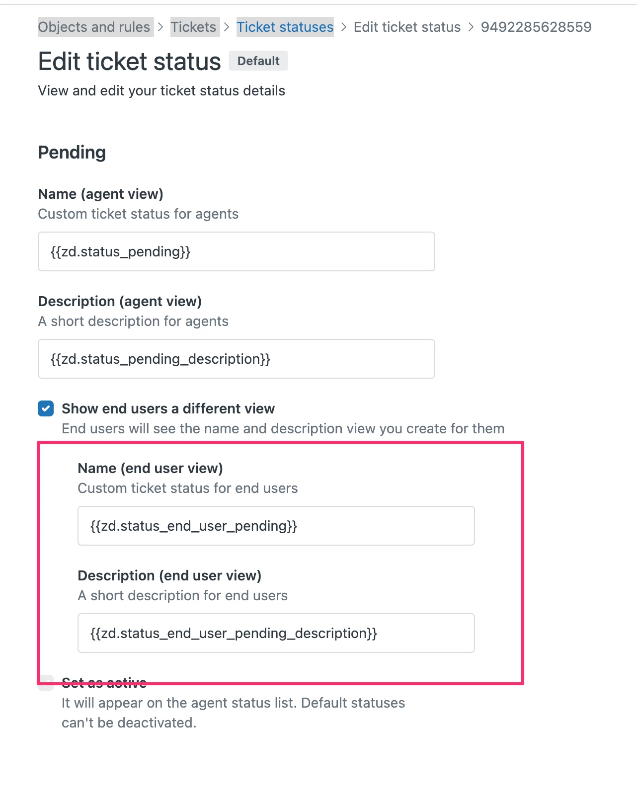 I understand that the ticket statuses that are displayed to end users in Help Center are different than the language that's displayed in the admin console. This configuration is only confusing to the end user who is looking at tickets for their organization or tickets they are cc'd on. No one is awaiting their reply. Please change this language to waiting for requestor to reply.