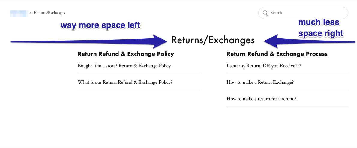 When I click on one category, let's say Return&Exchanges, this is how it looks: