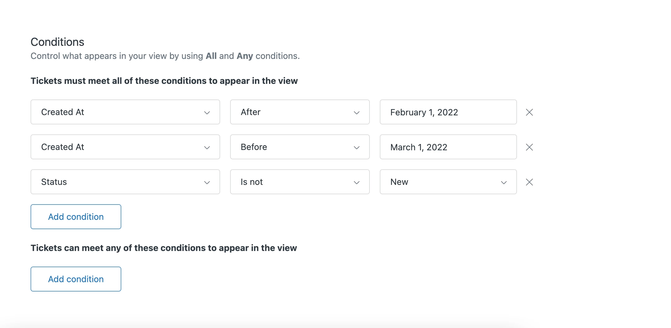 Is there a way to create a View based on for instance a months, i.e. All tickets created during the month of February?