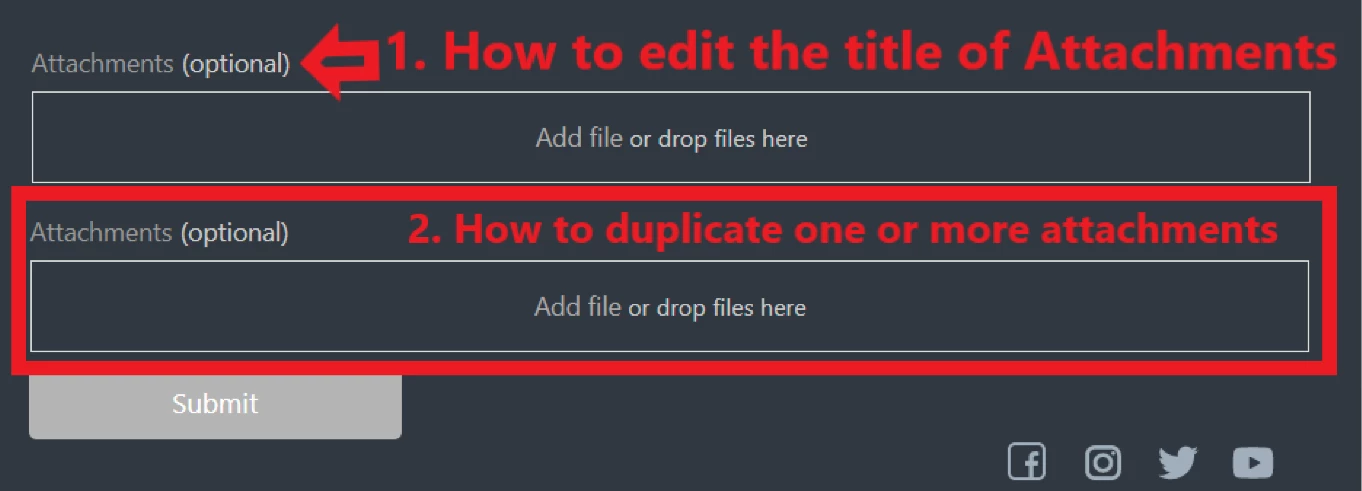 Hi Bonaliza! If you're looking to allow customers to add an attachment when creating a ticket through the form on your "Submit a request" page, "Customers can attach files" must be enabled in the "Attachments" section of Admin > Settings > Tickets in the Support interface. Once this is enabled, end users will see this option — you do not need to add a ticket field for it to appear.