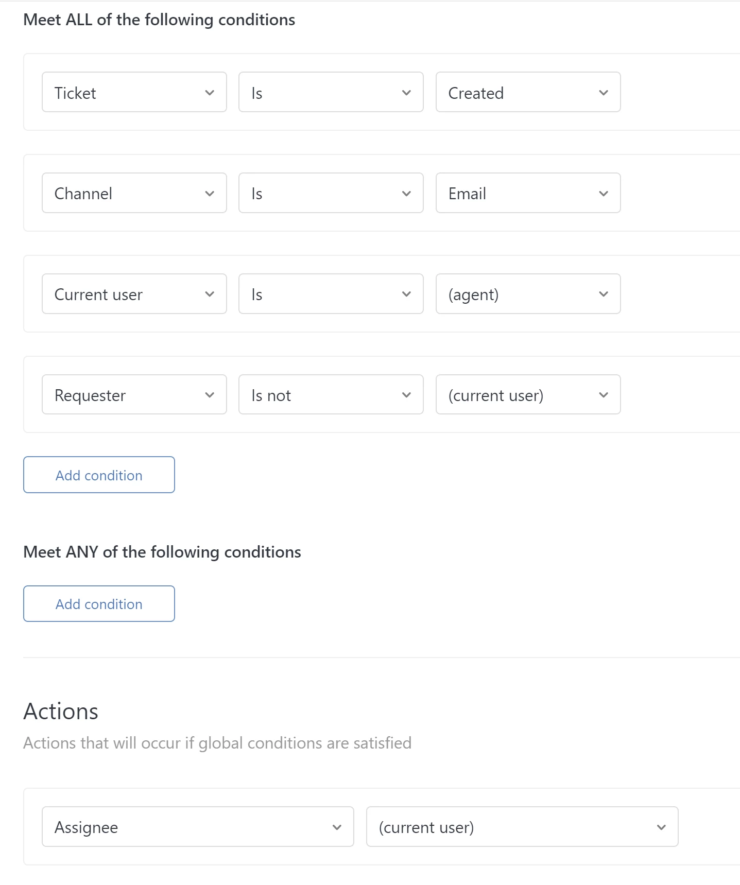 Email forwarding trigger assignment send via agent