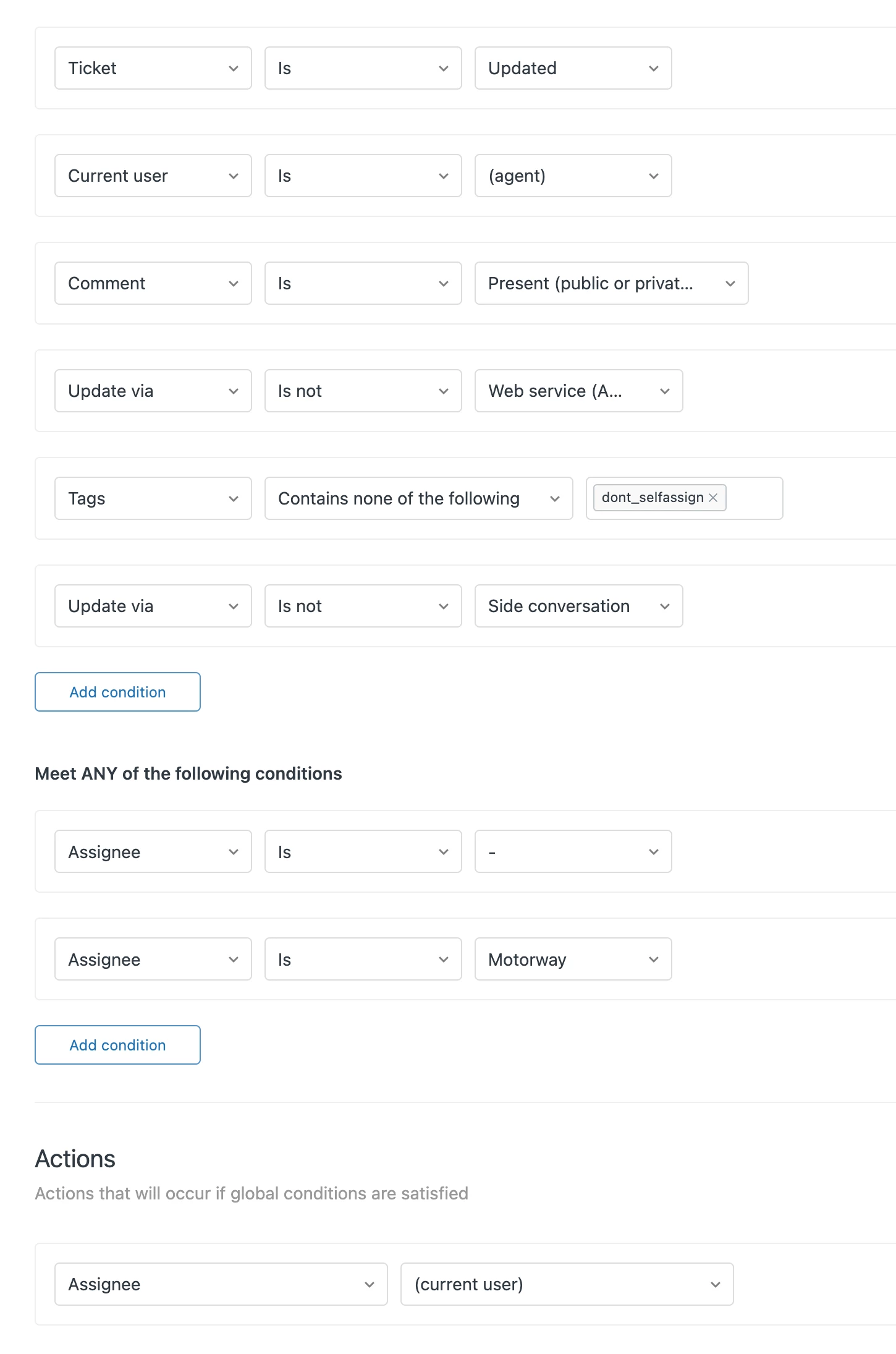 This trigger annoys my agents a lot though as if they respond to a ticket and they set the assignee to another group then the ticket will assign to them when they submit it and then they can assign to another group. In effect it takes two actions to do something that should take one.