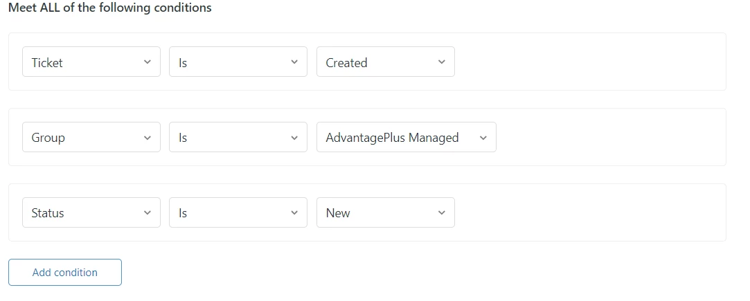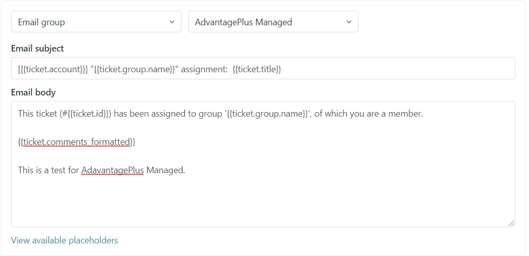So whenever a new tickets is created and is assigned to a specific group, I want to send a mail to each agents in this group to notify them that they have received a new tickets but no mail is being send to them. Below is how I set it up. I event tried (assigned group) but to no avails.