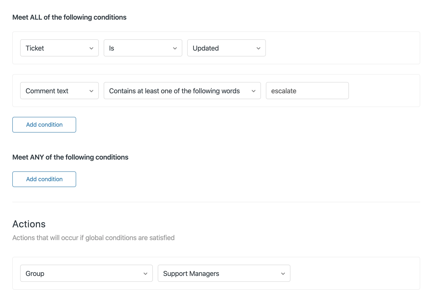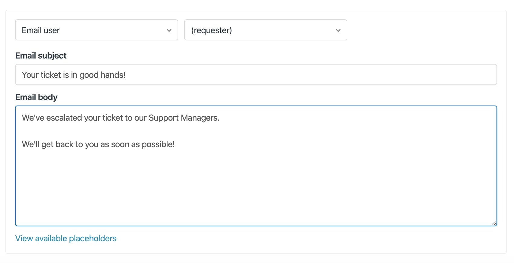 I would like to add/have an escalate button within support tickets where the customer can click on in case he is not satisfied. When he clicks on the button an email should be send to one or multiple users and the customer should be notified that the ticket was escalated and the will be contacted shortly.