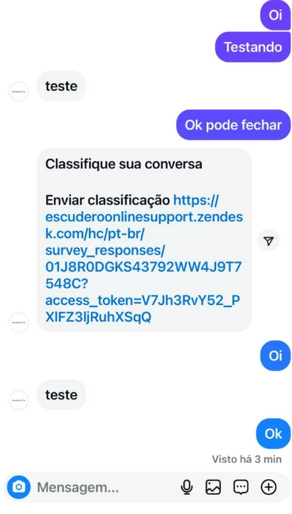 Esse link é enviado automaticamente ao se fechar uma conversa.