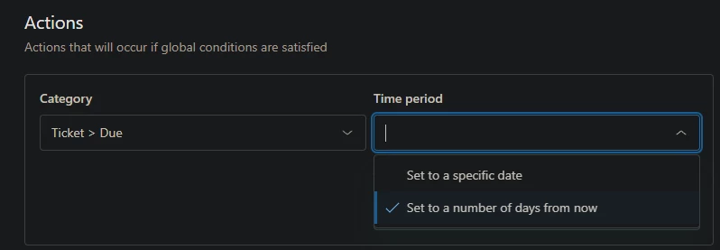 For more details on trigger conditions and actions, check the Ticket trigger conditions and actions reference.