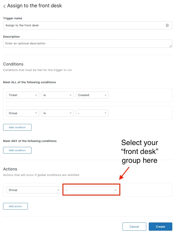 Is it possible to only notify a specific group when a new ticket comes in? I'm not just talking about emails. I want to only notify our front desk. They escalate as needed.
