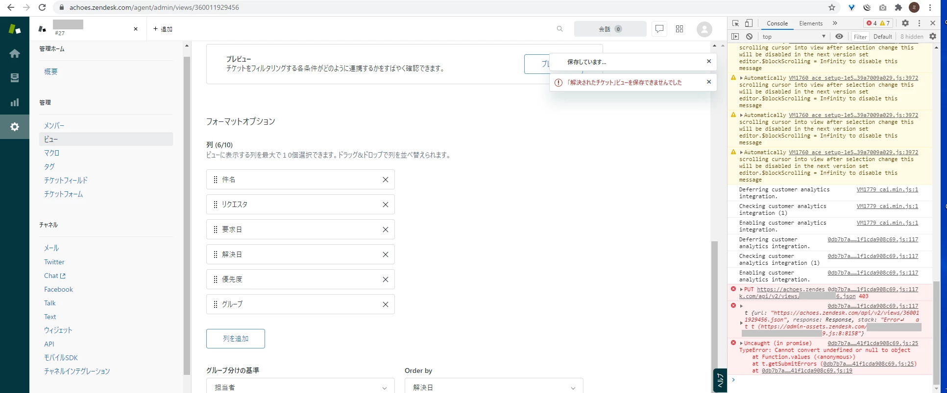 When I try to change name of view, or copy it i've got an Javascript error, and can't save changes. How can I solve this problem?