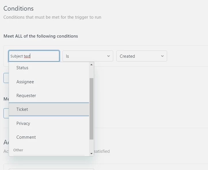 I'm trying to create a trigger based on the subject text. However, when I try to do so the option to select 'subject text' isn't available for me. How do I fix this, or is there a workaround?