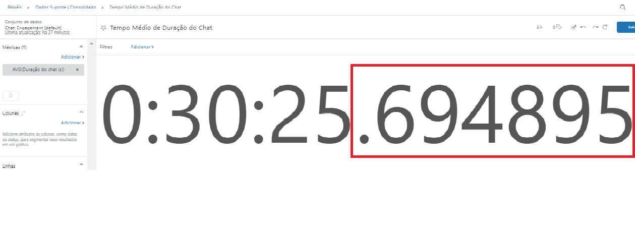 Formato de exibição para calculo de duração do chat em segundos (AVG) esta trazendo números após a exibição na extensão de tempo.