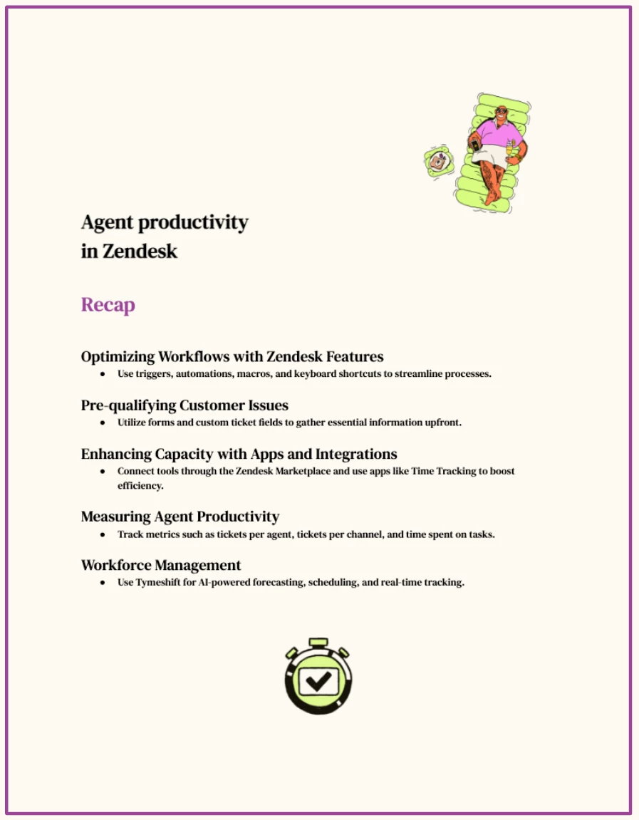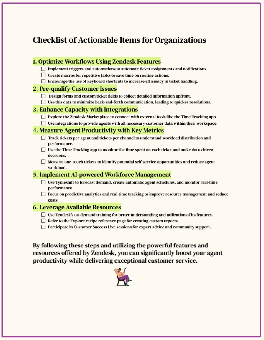 Additionally, we've created some checklists for you to use as you continue to build out your Zendesk with agent productivity in mind; check them out here: