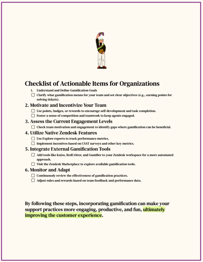 Additionally, we've created some checklists for you to use as you continue to build out your Zendesk with agent productivity in mind; check them out here: