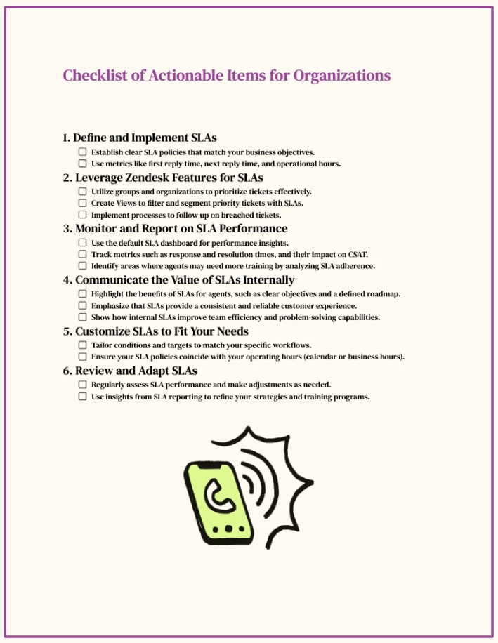 Additionally, we've created some checklists for you to use as you continue to build out your Zendesk with agent productivity and SLAs in mind; check them out here: